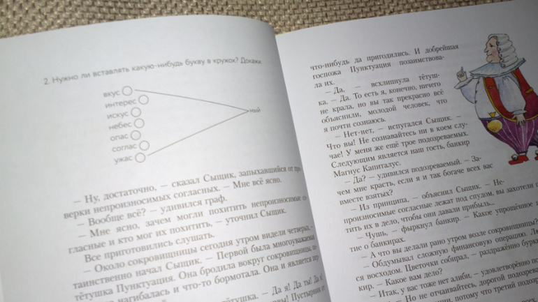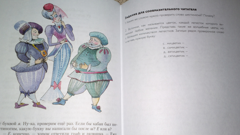 В этом не учебнике двойное попадание в цель! Здесь интересная сказка, а не скучный учебник с правилами и бесконечными заданиями. И ещё большим плюсом является то, что все рассказы написаны с юмором, а положительные эмоции способствуют запоминанию информации. Такое ощущение, что книгу писал нейропсихолог.