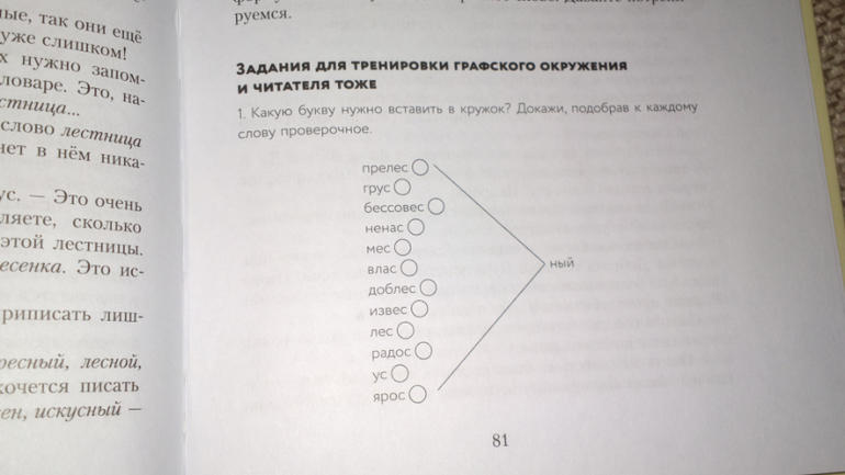 Остальные же задания очень полезны.Некоторые из них такие же, как в школьном учебнике, но их подача и оформление не вызывают у ребенка отторжения.Здесь не нужно открывать тетрадь и переписывать текст, вставляя пропущенные буквы.
