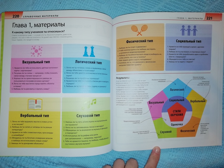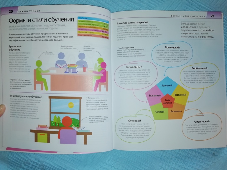 В первом разделе, который называется как мы учимся, дается общая информация об учебе, эффективных занятиях, работе мозга и стилях обучения.