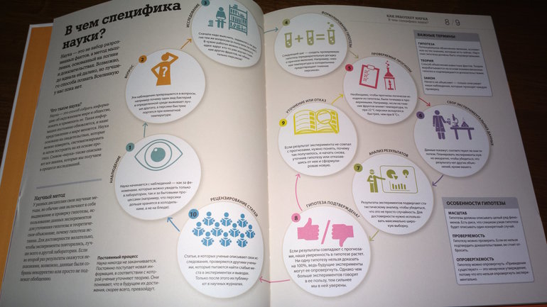 Средним и старшим школьникамДобрый день! Сегодня расскажу о книге "Как работает наука. Наглядные факты об устройстве нашего мира", которая подойдёт как школьникам, так и детям, обучающимся на семейной форме обучения. В школе дети сидят либо на уроке физике, либо на химии, а читая эту книгу попадаешь на стык наук. Разрозненные школьные знания так и хранятся у детей по разным "карманам" головного мозга. А ведь жизнь не делится на физику, химию, географию, биологию. Жизнь она цельная, а нашим детям в школах дают такие знания, что они не могут понять целостность окружающего мира.