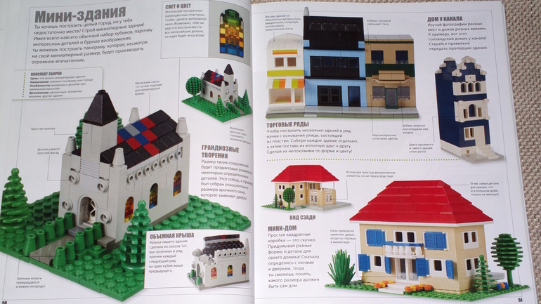 В книге нет готовых инструкций с пошаговыми описаниями и фотографиями сборки, в ней можно найти идеи, которые вдохновят ребенка на конструирование своих или подобных сооружений.