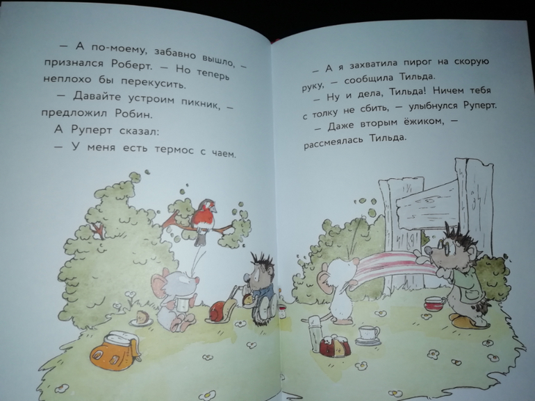Текст в книге крупный, читать ребенку комфортно, картинки есть на каждом развороте. Иллюстрации такие же милые, как и во всей серии, разве что их больше, чем в остальных книгах.