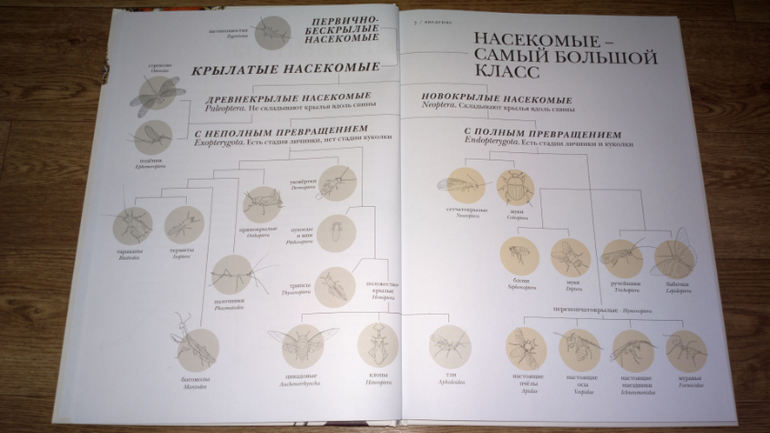 Понравилось мне и то, что в самом начале книги представлена наглядная блок-схема с классификацией насекомых. Её можно изучать вместе с ребенком, а когда на улице или дома вам встретится насекомое, то легко можно будет определить к какой группе оно относится.
