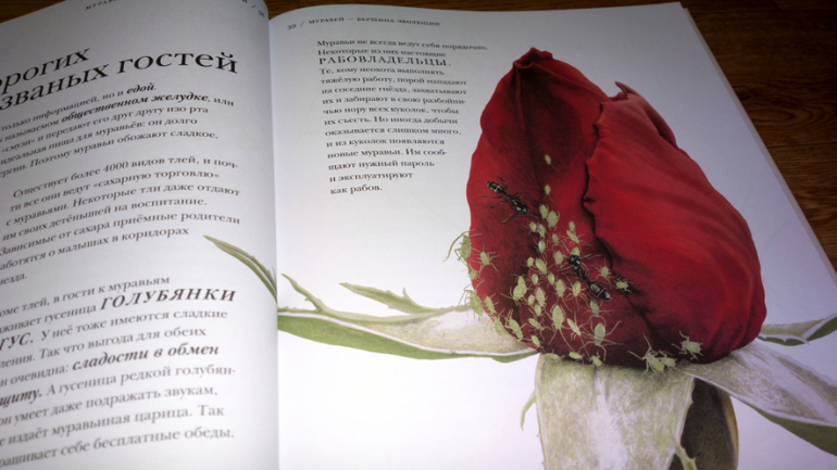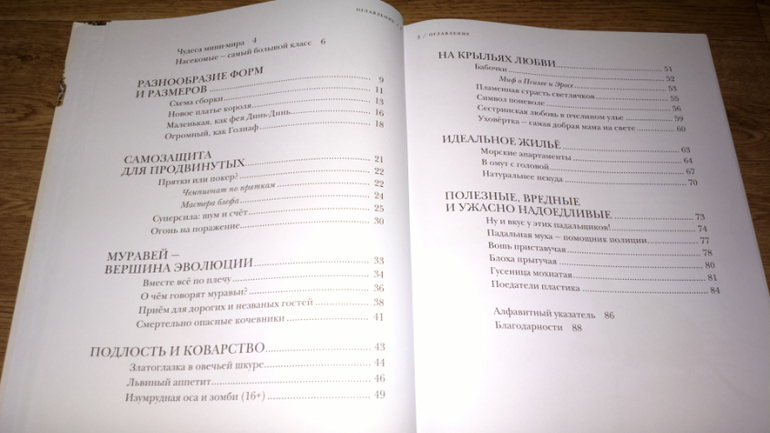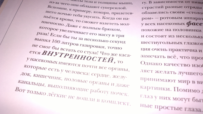 Животный мир, и особенно мир насекомых, может быть жестоким и опасным. Такова дикая природа. Издательство предупреждает, что в книге есть глава про насекомых-трупоедов с иллюстрацией мертвой птицы и глава про медленное убийство таракана тараканьей осой. Лучше эти главы прочитать с ребенком и вместе обсудить прочитанное.