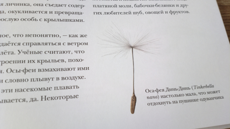 Отрежь у себя три волоска и положи их рядышком. Одно из самых маленьких насекомых в мире уместится поперек них! Эту малютку с очаровательными пушинками на крыльях почти невозможно разглядеть. Знаешь, как она называется? Оса-фея Динь-Динь.