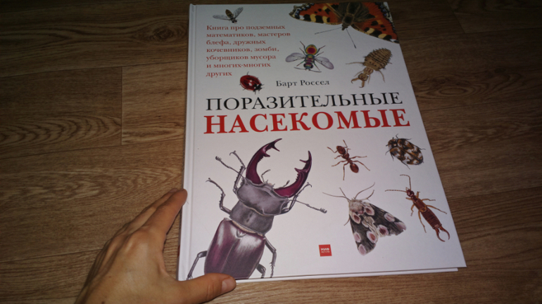 Дошкольникам и младшим школьникамДобрый день! Сегодня расскажу об увлекательной книге с очень длинным названием "Поразительные насекомые. Книга про подземных математиков, мастеров блефа, дружных кочевников, зомби, уборщиков мусора и многих-многих других" Книгу написал Барт Россел - бельгийский ученый-биоинженер, изобретатель, предприниматель и папа трех дочерей. Как же хочется, чтобы книга с таким длинным названием подольше не заканчивалась. Уж очень увлекательное чтение у нас с сыном получилось.
