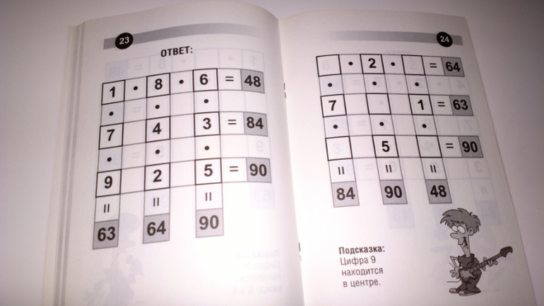 Не подумайте, что я такая вредина и придираюсь к пособиям, хотя, не без этого, но все же, я бы назвала это не сборником головоломок на сложение, а сборником математических кроссвордов.