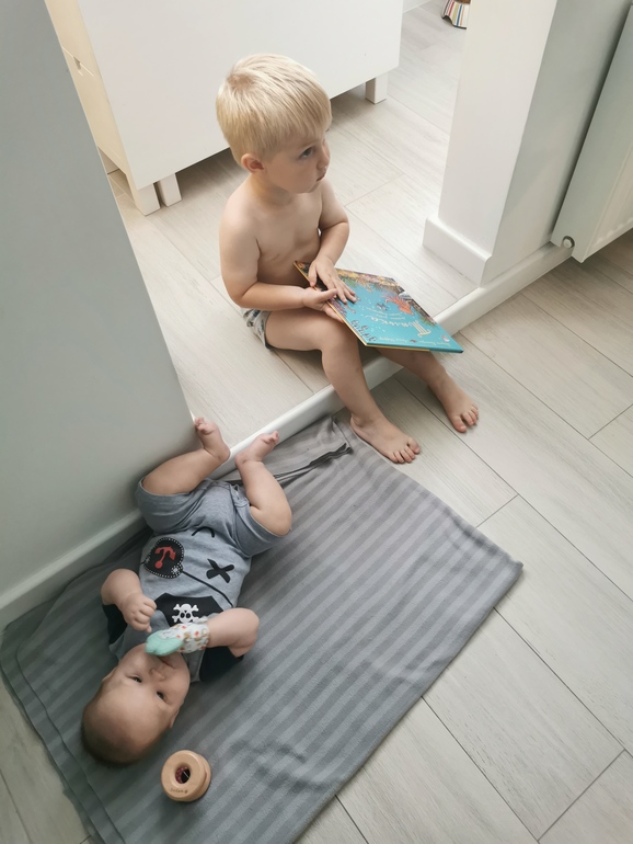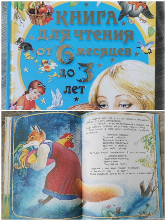 Около 2 лет, укладывая спать Льва, как всегда читая перед сном, а сейчас это почти каждый день новая книга, меня порадовало, что он лёг, отвернулся, даже не посмотрев книгу, и просто слушал, повторяя знакомые слова.