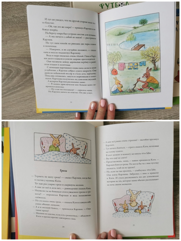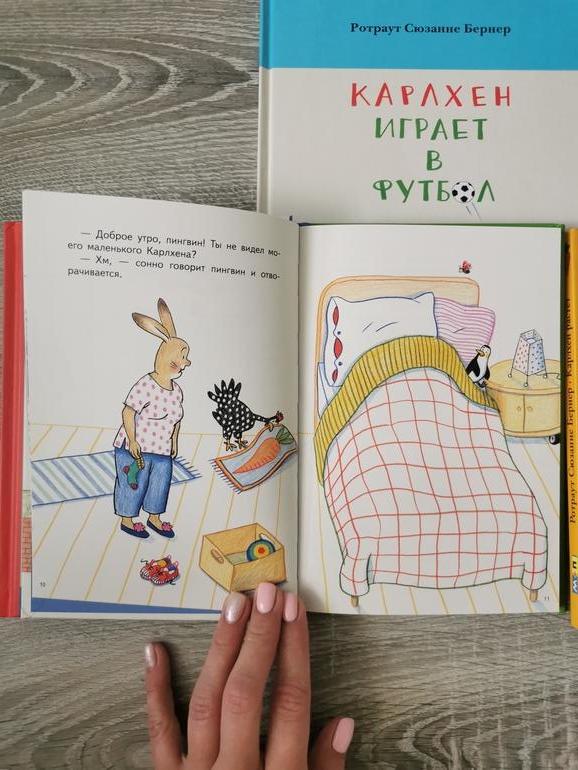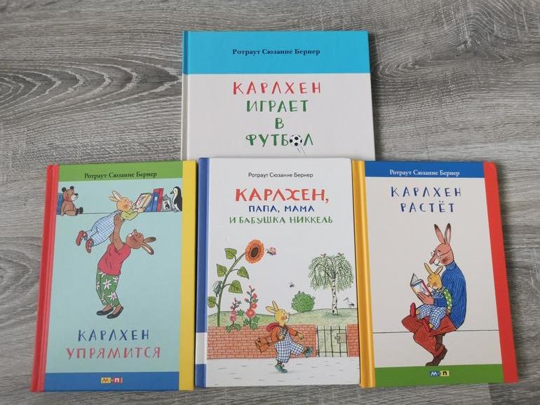 Другие две советую оставить на потом, когда поймёте "зашёл" ли зайчик ребёнку. Я начала с "Карлхен упрямится" и сначала подумала, что для нас это провальная серия. Но через несколько дней, попробовав вышеуказанную книгу, Лев оценил.
