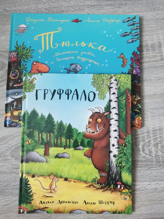 Лично у меня неоднозначное впечатление от обеих книг (кривоватый слог, непонятное чидовище, не сильно поучитальны). Но про Тюльку Льву нравится рассказ. Думаю потому, что он любит акул, а она в книге на картинке есть. К Груффало без особого интереса относится.
