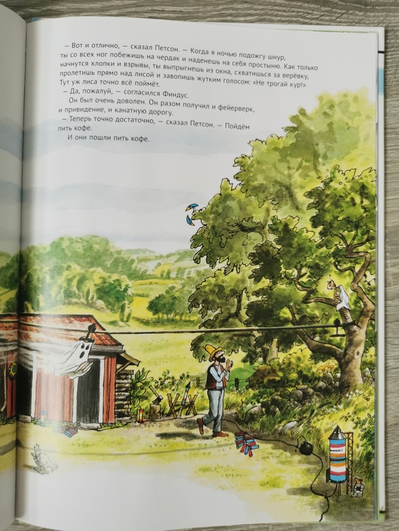 Вообще это серия книг про фермера Пэтсона и кота Финдуса. Одна из последних наших книг. Несколько тяжеловата для такого возраста. Прочитали за два присеста примерно за 1 час. Но сказка интересная. Неплохие иллюстрации. Наверно будет постарше - куплю ещё.