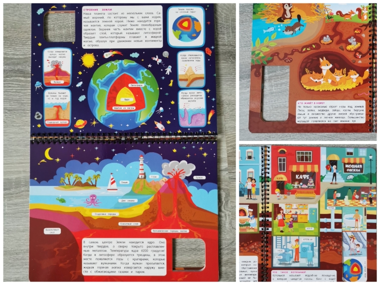 Большой формат, яркие иллюстрации, простой и доступный текст.
