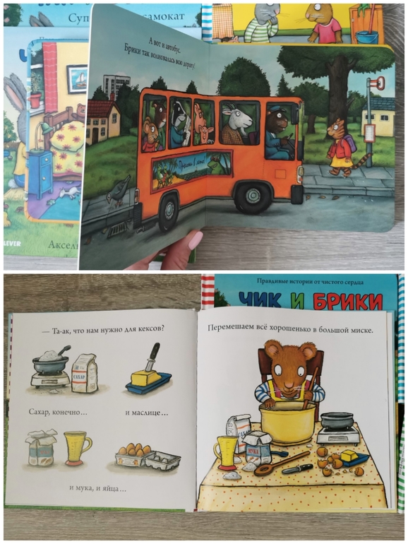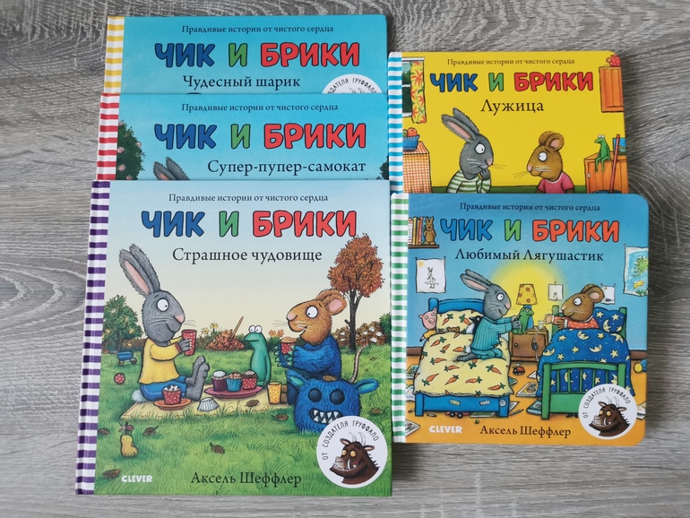 Были фаворитами библиотеки пару месяцев точно. Сейчас интерес поутих, но, сталкиваясь в жизни с похожими ситуациями (шарик недавно лопнул, к примеру, коленки разбил), сын все время вспоминает про Чика или Брики.