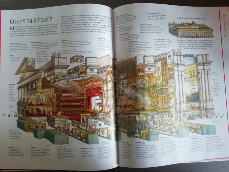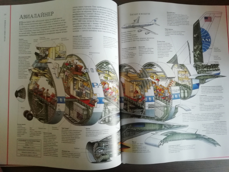 Если с первой энциклопедией мы изучали космос, то вторая- "Чудесные сечения" поможет нам заглянуть во внутрь зданий, кораблей и транспорта.