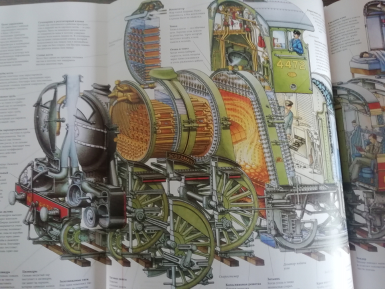 Развороты с океанским лайнером и паровозом открываются, внутри можно еще подробнее изучить как устроены этот транспорт.