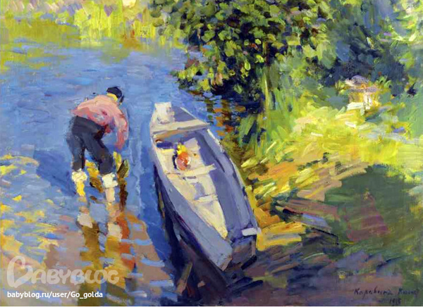Не хочу тут писать о том как происходило становление Коровина как писателя, хочу просто превести отрывок из его рассказа "Первая любовь" для того, чтоб Вы просто насладились его словом, как возможно вы наслаждаетесь его красками.