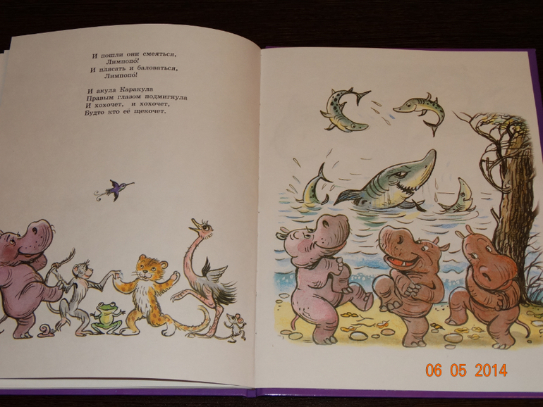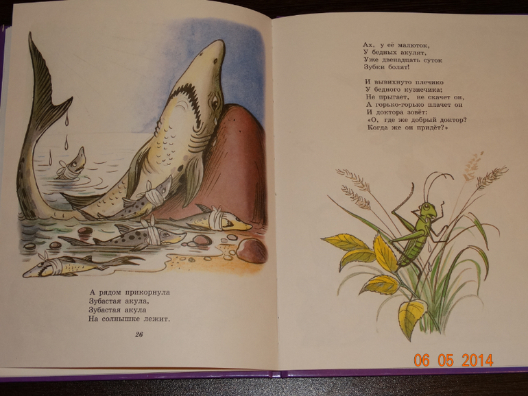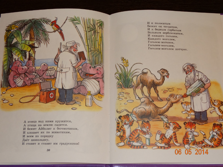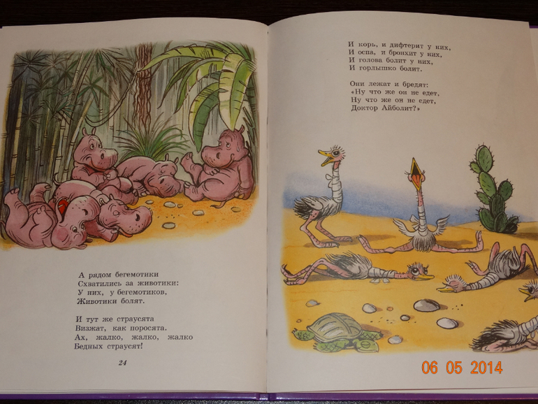 просто мнение о прочитанномПокажу вот такого "Айболита" - очень мне понравилась эта книга. Большой формат (29х22см), твердый переплет, бумага-плотный офсет. Открываешь ее - и просто окунаешься в такие знакомые с детства рисунки В. Сутеева. За счет большого размера, книга словно "окружает" своей сказочной атмосферой, и уже не замечаешь ничего вокруг, кроме добрых иллюстрации художника.