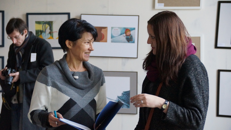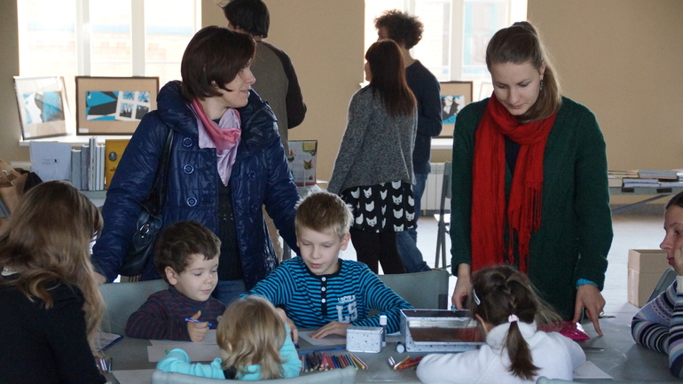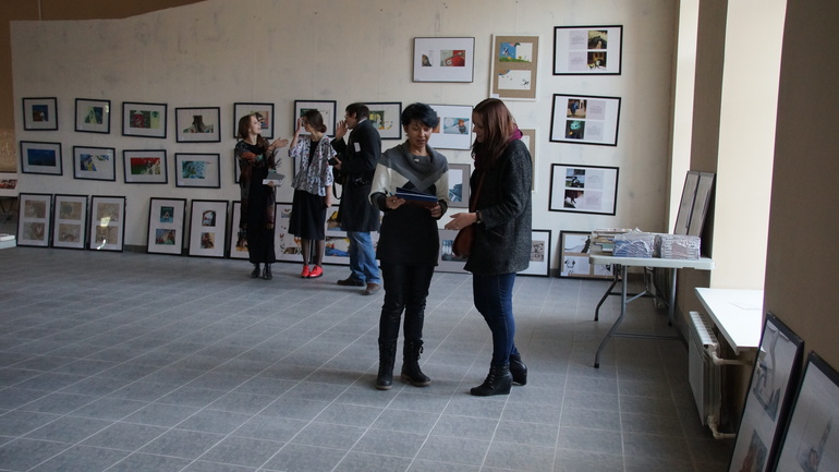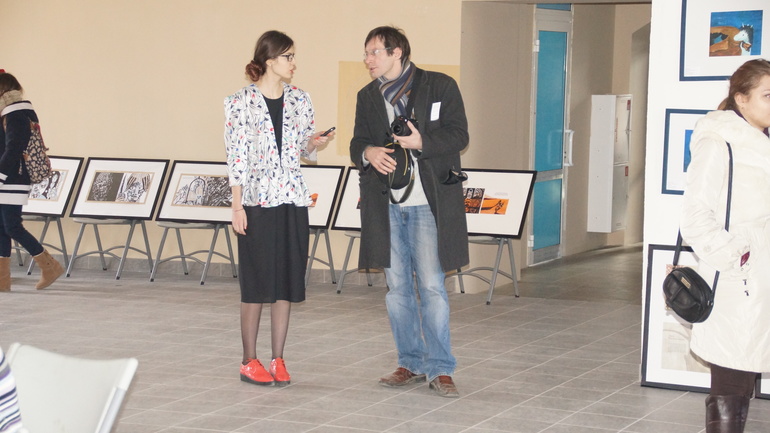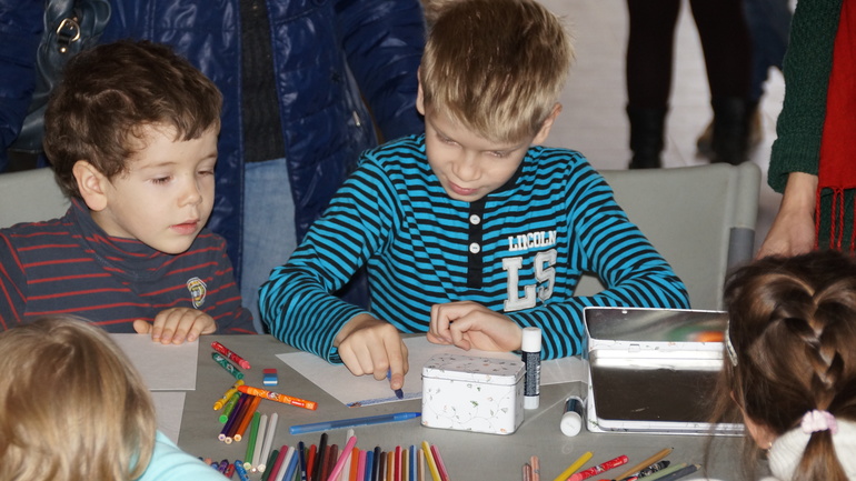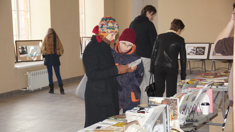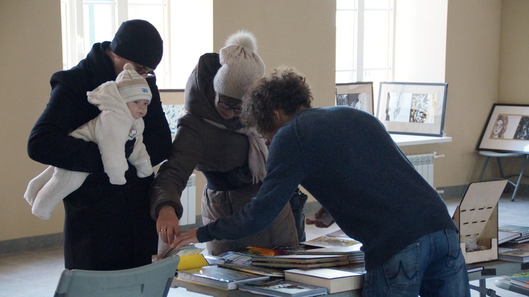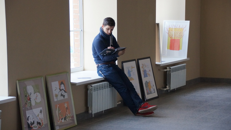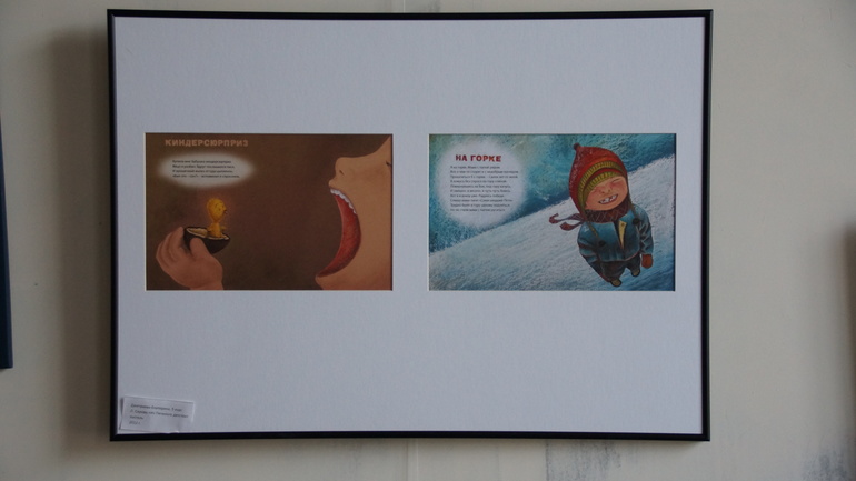 Увлеченно рисующие в центре большого зала малыши привлекали внимание при входе на экспозицию. Пятилетняя Рита изобразила любимых героев сказки «Снежная королева», а двое братьев фантазировали на тему звездных войн. Детский мастер-класс по книжной иллюстрации оказался вполне подходящим к тематике выставки.