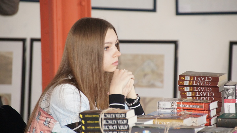 Хорошая иллюстрация формирует художественный и эстетический вкус у ребенка. Но вот, что делать, если дети вообще не берут книгу в руки? Ответ знают в первой в России организации, которая учит детей и их родителей любить печатные издания, «Книжный гид.org». Преподаватели объединения называют себя на старинный манер наставниками. Одна из них - Марта Райцес, девушка с внешностью принцессы из сказки, была в числе устроителей выставки.