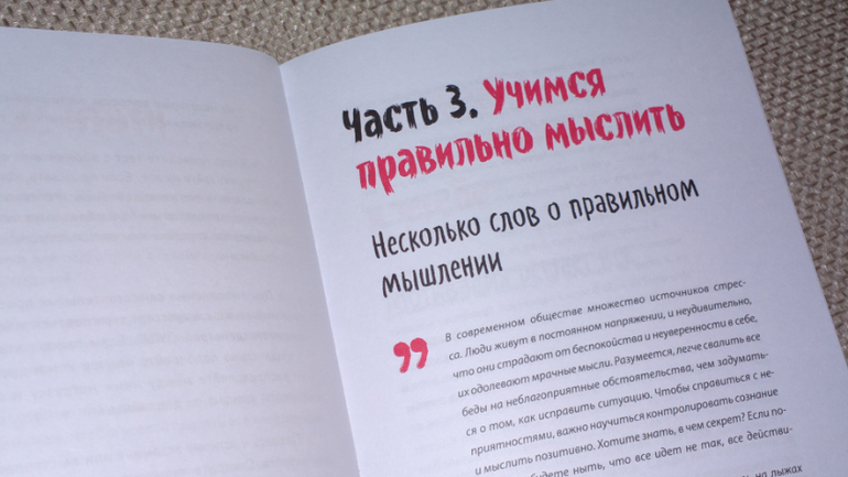 Третья глава научит читателя правильно мыслить. Эта глава о мотивации, о том, как она влияет на результаты учебы. Советы в ней помогут грамотно ставить цели.