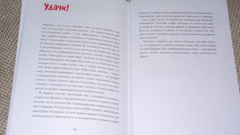 Автор пишет, что он потратил немало времени, чтобы разгадать, от чего же зависит эффективность обучения. И вот отгадка этого ребуса: умственные способности, время, объём ранее полученных знаний, мотивация, позитивный настрой, а также техники обучения и достижения высоких результатов. Но все это в отдельности не дает эффект. Для успешной учёбы нужно сочетание всех этих компонентов. В общем, книга посвящена именно разбору этих компонентов.