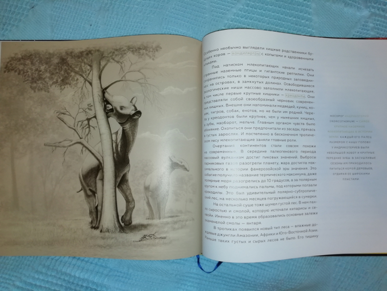 Оформление у книги точно такое же, как и у "Древние чудовища России", книга квадратная, с закладочкой в твердой обложке и с глянцевыми страничками.