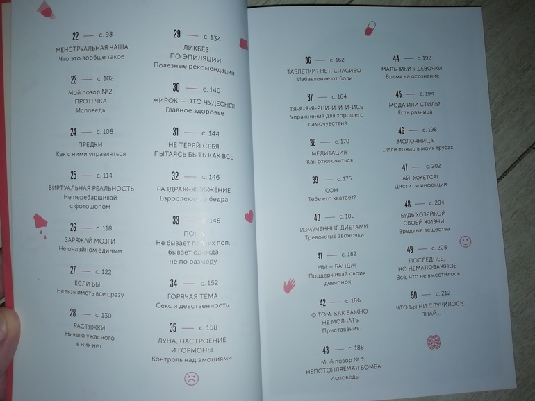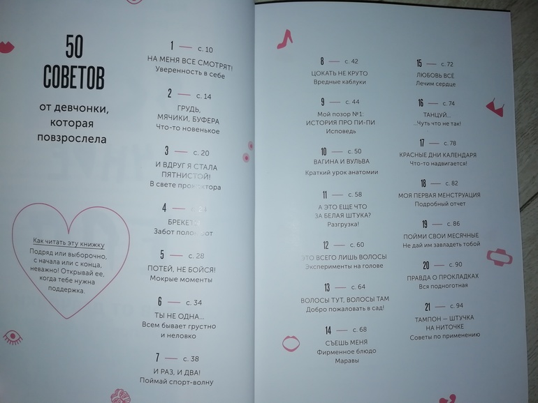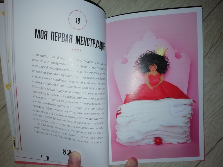 Сама я книгу прочитала, подача информации мне понравилась, есть моменты, которые меня смутили. Например, есть глава, называющаяся мальчики+девочки. В ней Марава рассказывает как ее братья в детстве любили наряжаться в платья, а она хотела выглядеть как мальчик. К счастью, никакого углубления в эту тему в книге нет, просто написано, что когда ты вырастешь, ты сама разберешься кем быть. Лично я вижу в этой главе тему трансгендерности, я бы не хотела, чтобы мои дети в принципе думали на эту тему, поэтому данная глава вызывает у меня неоднозначное впечатление. Но в целом информации о взрослении тела девочки много, она интересно представлена и книгу дочке для самостоятельного чтения я планирую дать лет в десять.