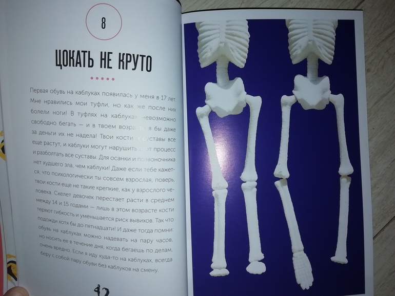 Куда же без спорта, а точнее растяжки? Она полезна и в книге есть упражнения для девочки на случай, если тело затекло или где-то болит.