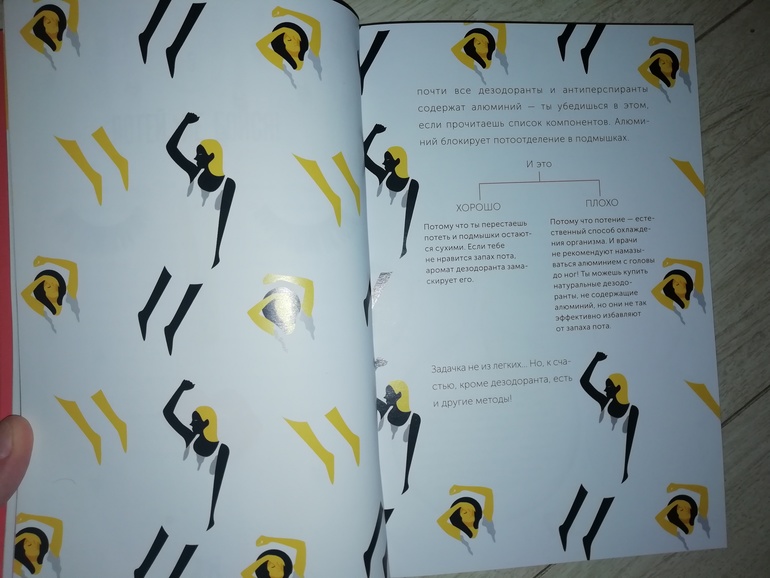 Процесс взросления так же сопровождается обильным потоотделением. От этого подростки чувствуют себя очень неловко и стыдятся своего тела. Дезодорант вроде бы выход, но нужно понимать его вред и пользу и использовать с умом. К тому же, в книге рассказано и про другие способы справиться с потоотделением, в том числе рассказано и про натуральные дезодоранты.