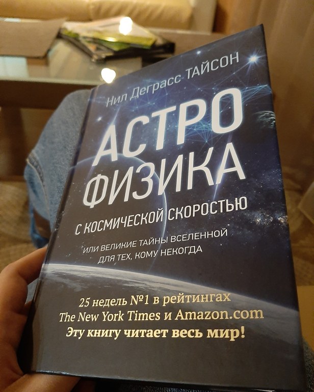 Кайфушечки - муж ушёл в тренажёрный зал, сын убежал в игровую (уже со всеми детьми в дом отдыха перезнакомился😁), а у меня бокальчик вина🍷и Нил Деграсс Тайсон в компанию☄🤗 Кстати, о последнем, "Астрофизика с космической скоростью" или астрофизика для чайников)) потрясающая книга, всем, кто хочет иметь хотя бы общие представления о возникновении вселенной, большом взрыве, чёрных дырах и других увлекательных вещах вселенной , при этом в лёгком изложении, очень советую. Правда на счет того, что для "чайников" не обольщайтесь. Если конечно вы прекрасно помните/знаете , что такое кварки, адроны, термоядерный синтез и тд, то да, но а мне приходится периодически заглядывать в википедию🤷♀️ но это того стоит😁 #миниотпуск #отдыхсемьей #чтопочитать #астрофизика