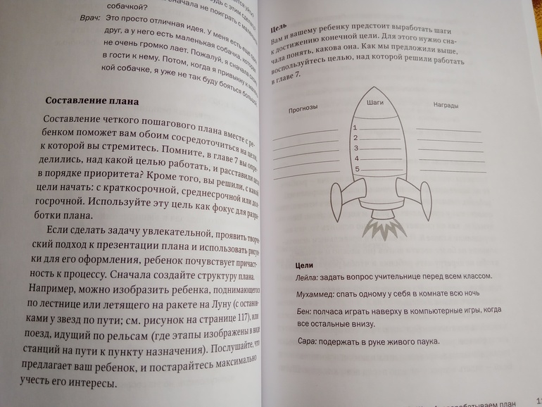 "Говорить о тревожных ожиданиях очень тяжело, страшно или скучно важно постараться сделать процесс более увлекательным или даже веселым, если это возможно. для детей младшего возраста используйте кукол мультфильмы мягких игрушек и другие игрушки (см. главу16). Помогите ребенку сделать "шкатулку со страхами" ❤️ или книгу для записи пугающих мыслей и оформить их в его любимых цветах. Для детей постарше можно объединить разговор с походом в любимое кафе."