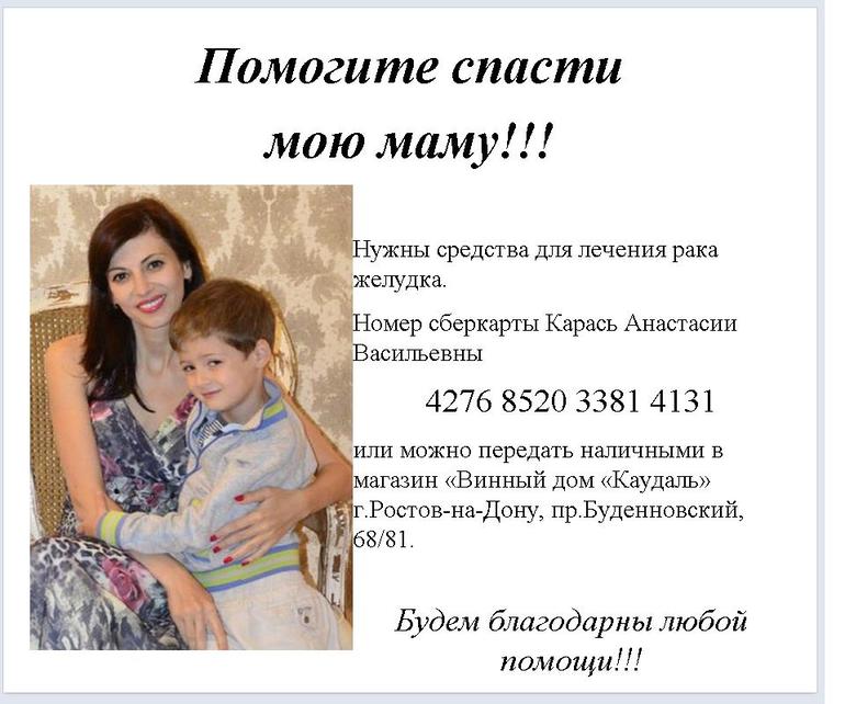 Её зовут Василиса, ей 35 лет и она мама двух деток 16 и 6 лет. Муж в прошлом году скончался от рака крови. В России оперировать не берутся, так как состояние крайне тяжелое. Чтобы её спасти необходима операция и лечение в Германии, которое стоит свыше 90 тысяч ЕВРО. Если у вас есть такая возможность и желание помочь, Вы можете пожертвовать любую сумму на сберкарту Карась Анастасии Васильевны 4276 8520 3381 4131, указав в назначении платежа "добровольное пожертвование" или передать наличными через Администрацию села Лысогорка.