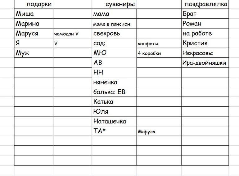 Вроде, что особенного. Но во первых, легче будет понять бюджет и вполне может что после расчетов, кто-то переедет из первого столбика во второй, а кто-то и в третий) а во-вторых, опять таки - наглядность и никого не забудешь!