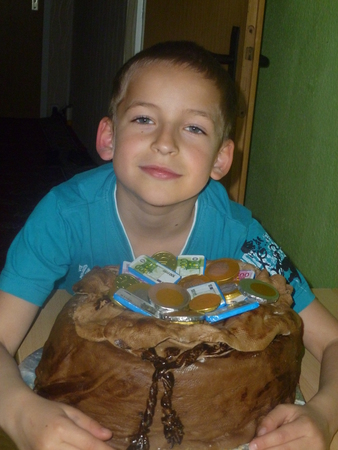 Торт,,МЕШОК-ДЕНЕГ,,делала сыну на 16и летие)Это 4ый торт работы с мастикой.Больше племянику правда торт понравился.Торт медовый,крем сметанный.