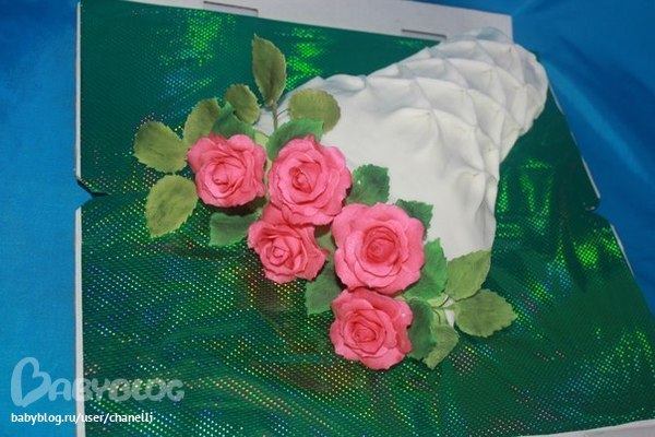 Ой Райда розы конечно шикарные ,но меня уже довно мучает вопрос ,как же делают эти узоры (упаковка букета) примерно понимаю,даже на ткани могу легко делать, а вот на мастике не получается,может у вас МК есть?
