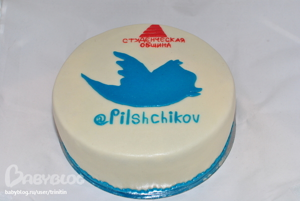 Самое сложное в этом торте это было сделать надпись "Студенческая община", так как высота меньше 1 см. А нарисовать - не смотрелось((