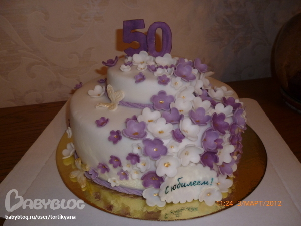 Да такой милый торт и феолетовый в сочетании с белым так нежно))а можно спросить-цифры из чего лепили??-у мамы намечается юбилей, вот смотрю тортики ищю вдохновение)))очень ваш понравился, наверно сделаю наподобе))