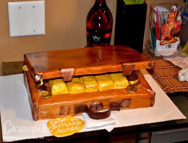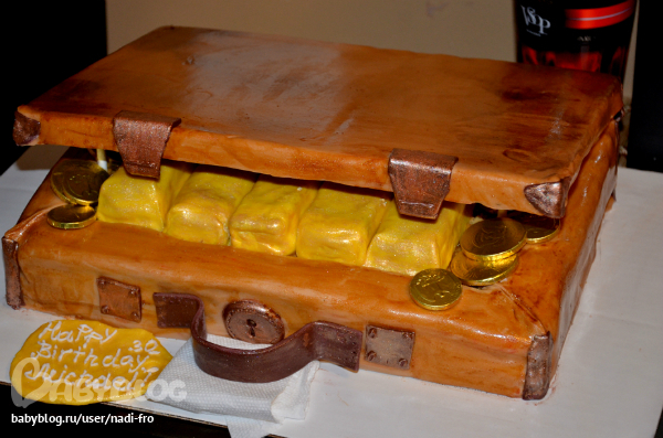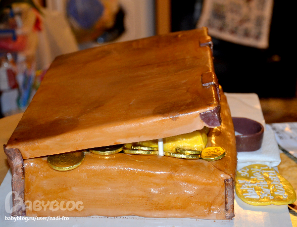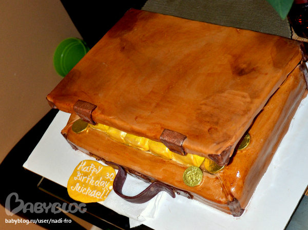 Торты для мужчинПришлось мне помучиться с ним.с крышкой! сперва решила ее сделать из коржа медового..обтянула..она стала выгинаться.. никак не крепилась..я психовала..уже хотелось нафиг послать этот торт(( а нафик не пошлешь.. в общем, взяла картон *подложку для тортов) вырезала нужным размером.. обтянула..замаскировала.. сзади всеравно отходит.. если его кантавать(( на вкус ВКУСНЫЙ)) пока делала слидки вырезала..пробовала)..медовый с кремом (сливки-вареная сгущенка)..забрали! спокойно..что отделалсь..хотя еще хочу услышать мнение от заказчицы!)
