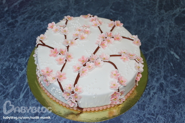 Может показаться, что совсем неровный, но это оптический обман зрения, т.к. веточки визуально режут края тортика ((((((((