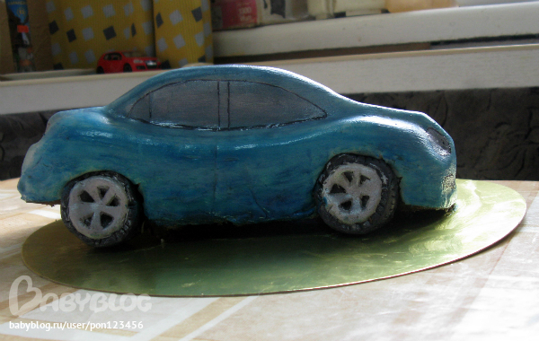Проба пераРастроилась, машинка по началу ровненькая красиая была, решила сверху покрасить получилась не особо, лучше красить мастику только, ладно пол беды, поставила ее на колеса под низ не чего опору не сделала она у меня вся загнулась. Выводы конечно для себя сделала, может еще кто посоветует как правильно действовать. В итоге не доделав (я растроилась, мы ее сьели) правда вкусная зараза шифоновая прага весом кг 2, сливки пропитка с амаретто. Вот мое чудо -юдо.