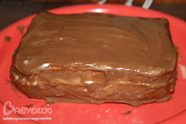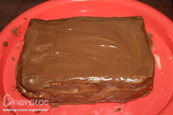 получилось у меня два тортика небольших=)один с шоколадным кремом сверху а второй с белым=) внутри крема чередовала,вобщем безумно вкусно и почти все скушали!!