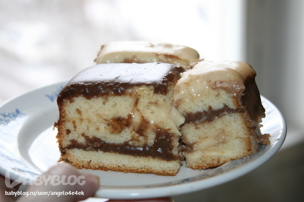 а крем обычный заварной у меня ,просто разделила на 2 части и в одну добавила какао=)