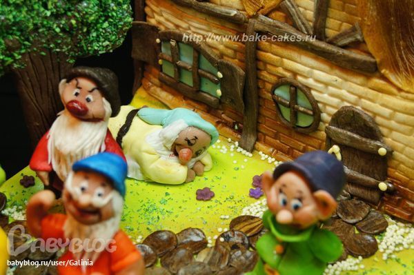 Очень, очень-очень красивый торт! домик необыкновенно проработанный. Белоснежка очень похожа! А какой у него вес??!! у торта?? и по какой технологии сделано деревце?! все листочки видно! у меня оущущение, что они от ветра колышутся :)