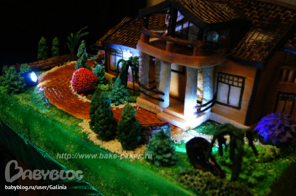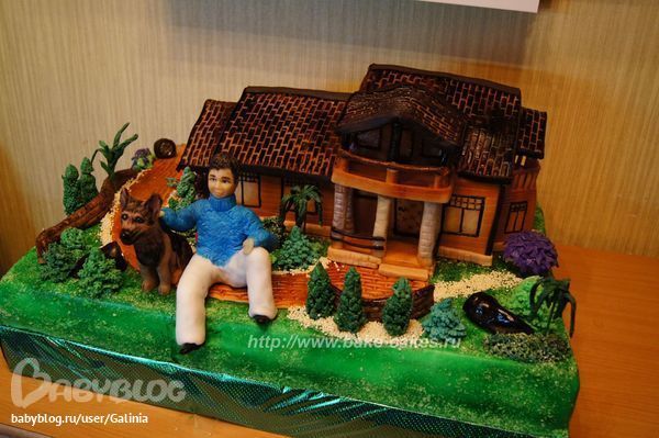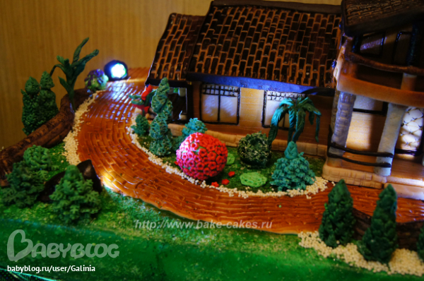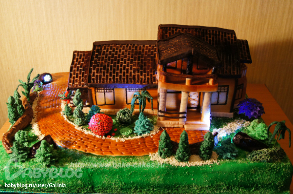 Торты тематическиедомик делала по архитектурному плану,кустики ,цветочки делала по фотографиям участка заказчика