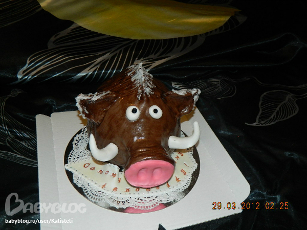 Торты для мужчинХотите посмеяться))))))) Заказали кабанчика. Прислали картинку...на картинке кабанчик как сувенирная игруха из глины....попробовала сделать тортик))))