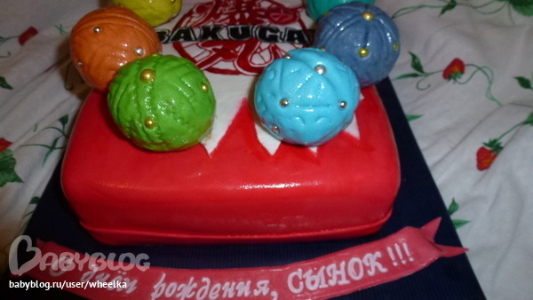 Внутри бакуганов пирожное по типу картошка с воздушным рисом. Сложновато все-таки обтягивать шары мастикой))