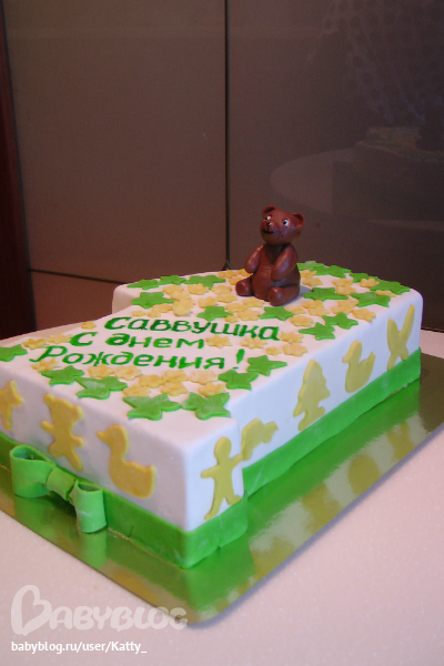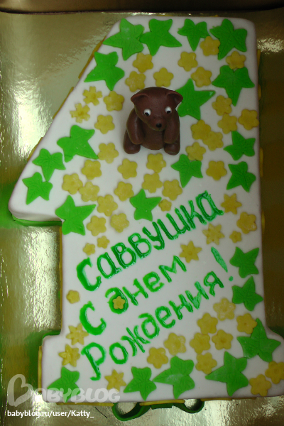 Единичка получилась весом 3 кг. Внутри шифоновый бисквит и птичье молоко с клубникой. Заказчица попросила украсить не в традиционных голубых "мальчуковых" тонах, а в желтых.