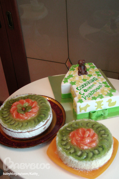 единичка - именинная, еще детский тортик с творожным суфле, ну и еще один сделала для своих мужичков, чтобы не расстраивались ))))))