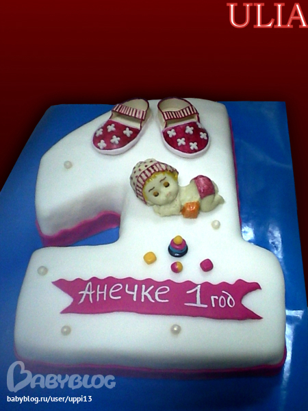 ААА, Юльчик! У меня тоже такой тортик вчера был (с пояском и зайчиком в кармане :)))! Вот совпадение!!! Только мы цвет поменяли, беленькую сделали, а аксы голубые :) Ну, чего пишу, скоро выложу - посмотришь :)