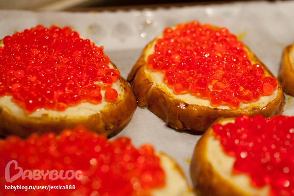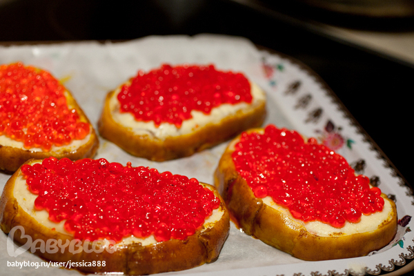 потом из них вырезался "кусок хлеба", делалась "корочка" из мастики, и икра - из желе подкрашенного (тоже много где МК выложены)